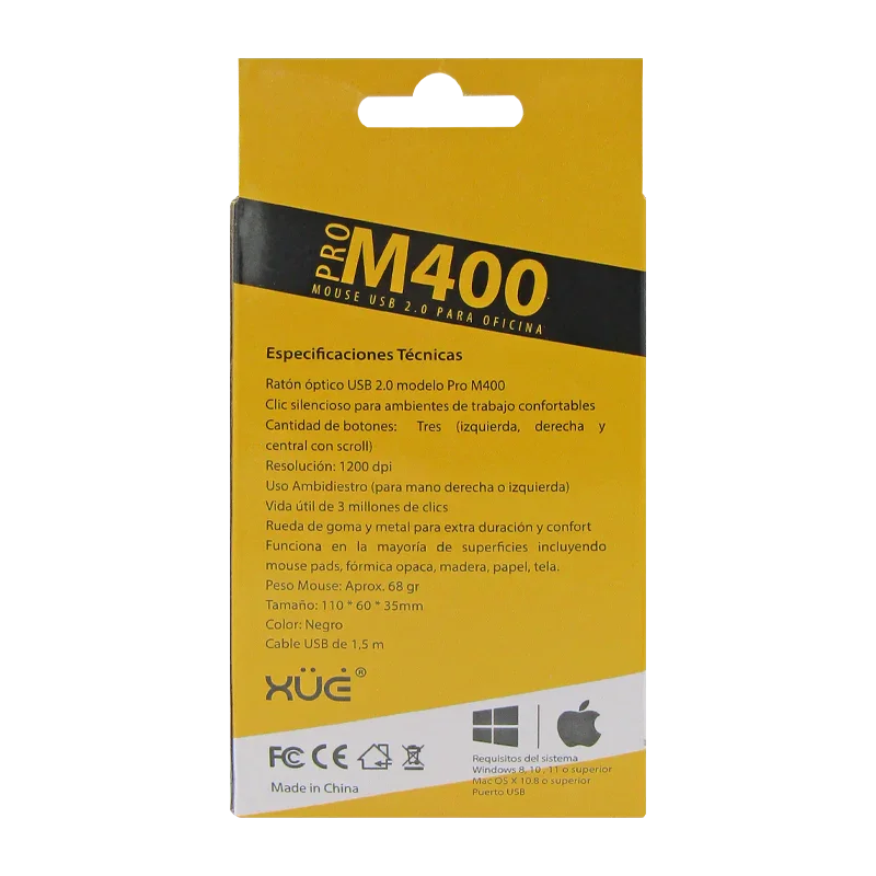 Mouse Óptico USB XUE PRO M400 1200 DPI Negro para Oficina